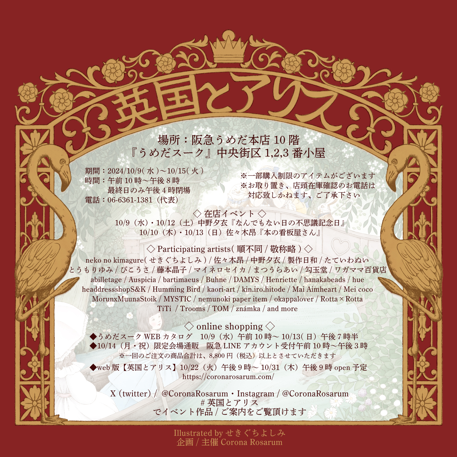 ◆web版【英国とアリス】10/22(火)21時〜10/31(木)21時open予定 https://coronarosarum.com/